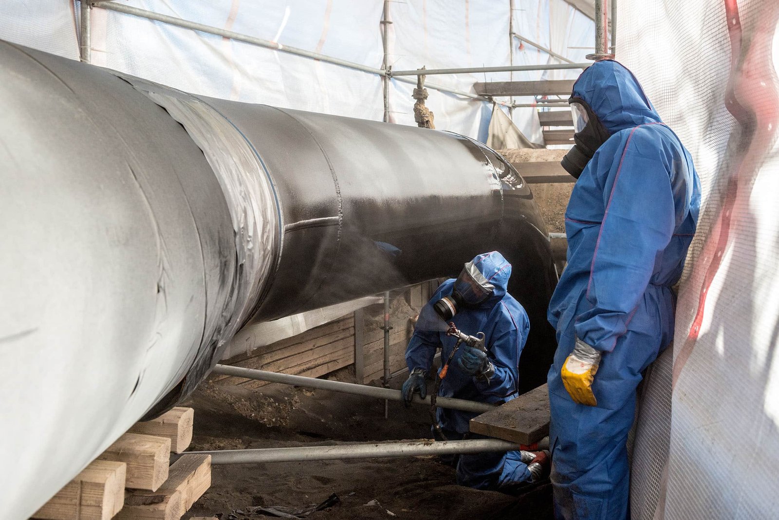 Beschichtung und Umhüllung von Pipelinerohren zählen zu den Spezialgebieten der Firma Augel. Hierin sind wir umfangreich geschult und zertifiziert. In diesem Bauvorhaben umhüllte die Firma Augel im Heißspritzverfahren ein 600 Meter langes Pipelinerohr DN 900 mit Densolid FK2, eine zweikomponentige Polyurethanbeschichtung, welche bei erdverlegten Pipelines, Armaturen und Behältern für einen dauerhaften Korrosionsschutz eingesetzt wird.