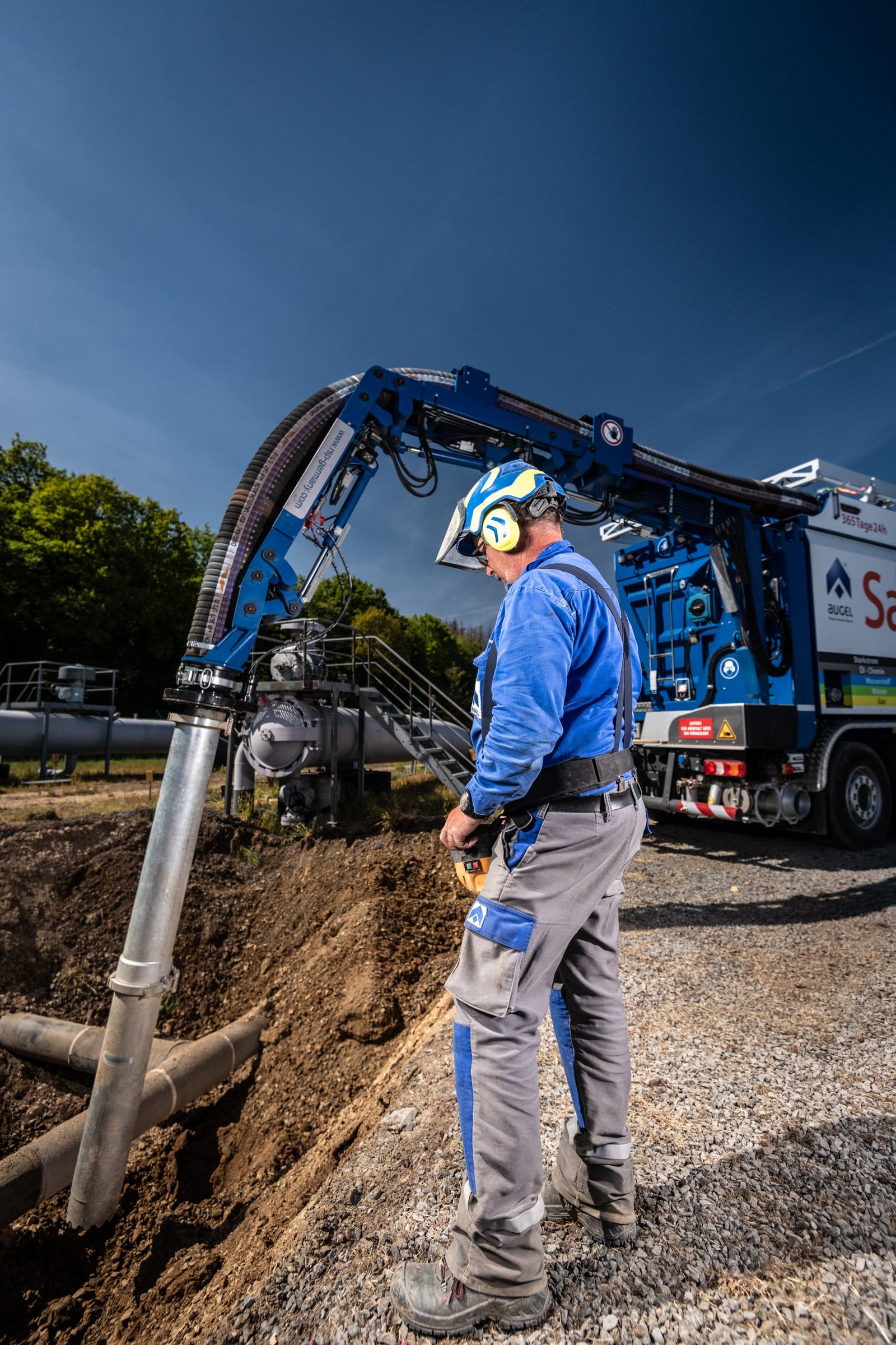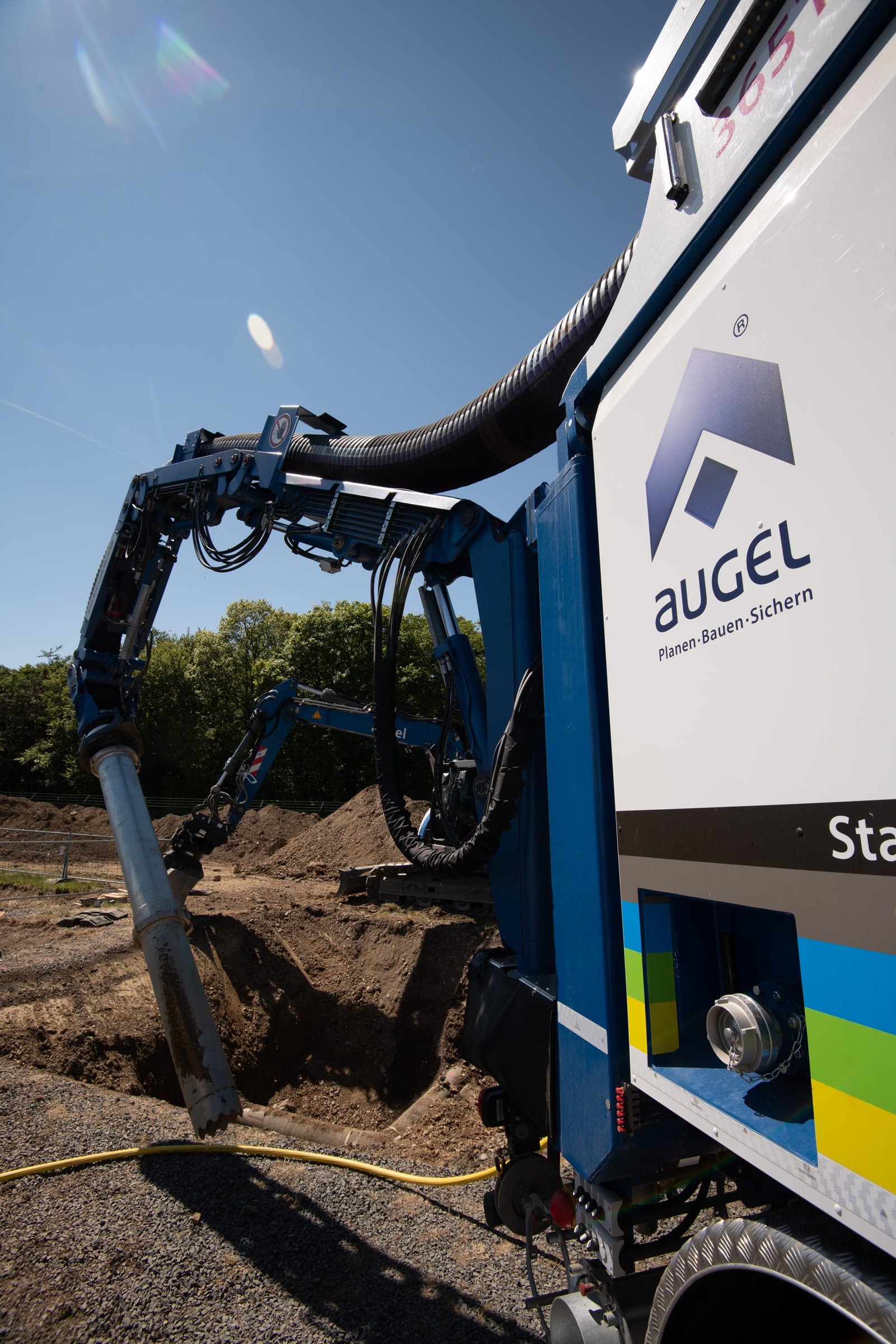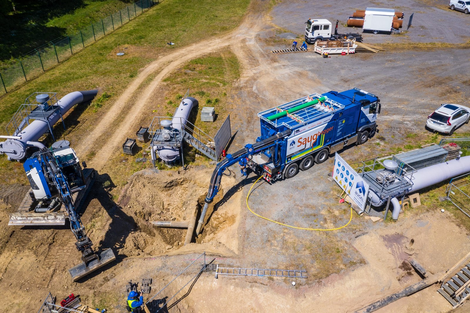 In der Eifel führt die Firma Augel seit Ende April 2020 diverse Tiefbauarbeiten im Auftrag der TENP durch. Ein großer Bestandteil der Baumaßnahme ist die Umlegung einer Gasleitung DN300 in Auderath. Dazu werden diverse Maßnahme rund um den Rohrbau durchgeführt. PE-Altumhüllungen werden entfernt, und diverse Trennschnitte durchgeführt. Anschließend wird der Leitungsverlauf angepasst, gefolgt von Schweißarbeiten nach DVGW GW350 mit anschließender PE-Nachumhüllung der Schweißnähte an blanken Rohrstücken sowie Rohrbögen.